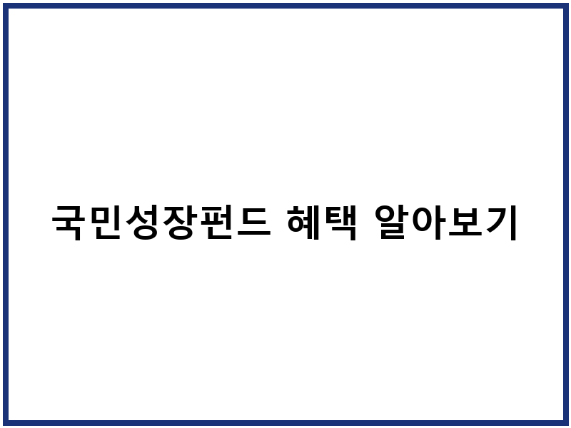 국민성장펀드 혜택 알아보기