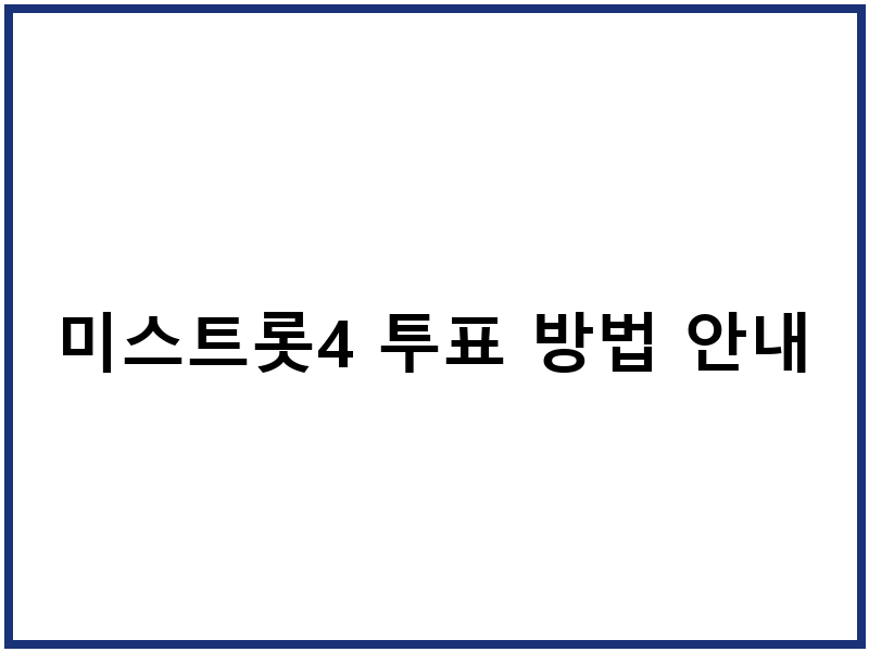 복잡하게만 느껴졌던 ‘미스트롯4’ 투표 과정, 사실 알고 보면 아주 간단하답니다. 가장 중요한 것은 바로 투표 참여 방법을 정확히 아는 것이겠죠. 아래에서 자세한 내용을 확인해 보세요.