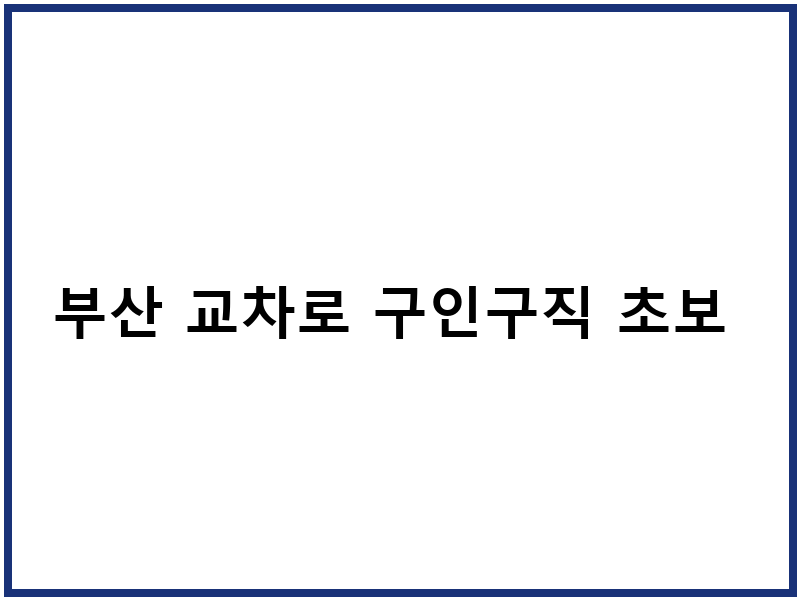 부산 교차로 구인구직, 이것만 알면 쉬워요!