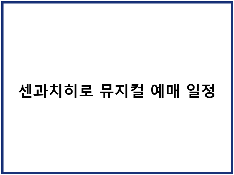 센과치히로 뮤지컬 3차 티켓팅 상세 안내