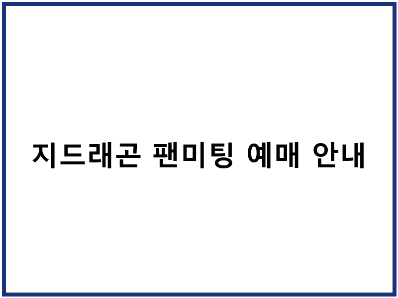 성공적인 지드래곤 팬미팅 티켓팅을 위한 몇 가지 꿀팁을 알려드릴게요. 이번 팬미팅은 팬들과의 특별한 만남을 위해 준비된 만큼, 많은 분들의 관심이 쏠릴 것으로 예상됩니다. 아래 표를 참고하여 티켓팅 성공 확률을 높여보세요.