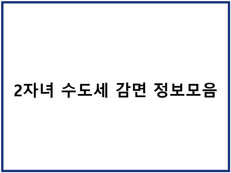 2자녀 수도세 감면 혜택 알아보기